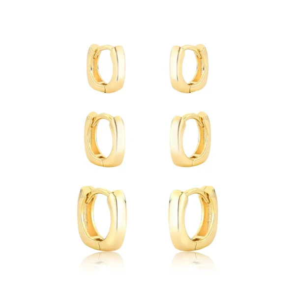 O Brinco Argola trio quadrado liso Banhado a Ouro é uma peça deslumbrante que combina a leveza e delicadeza de um banhado de ouro 18k. Este brinco é o acessório perfeito para adicionar um toque de glamour e charme a qualquer look, seja para o dia a dia ou para ocasiões especiais. | Argola semi joia trabalhada com zircônia