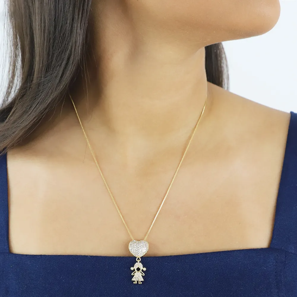 | Content | Colar semi joia coração com menina cravejada